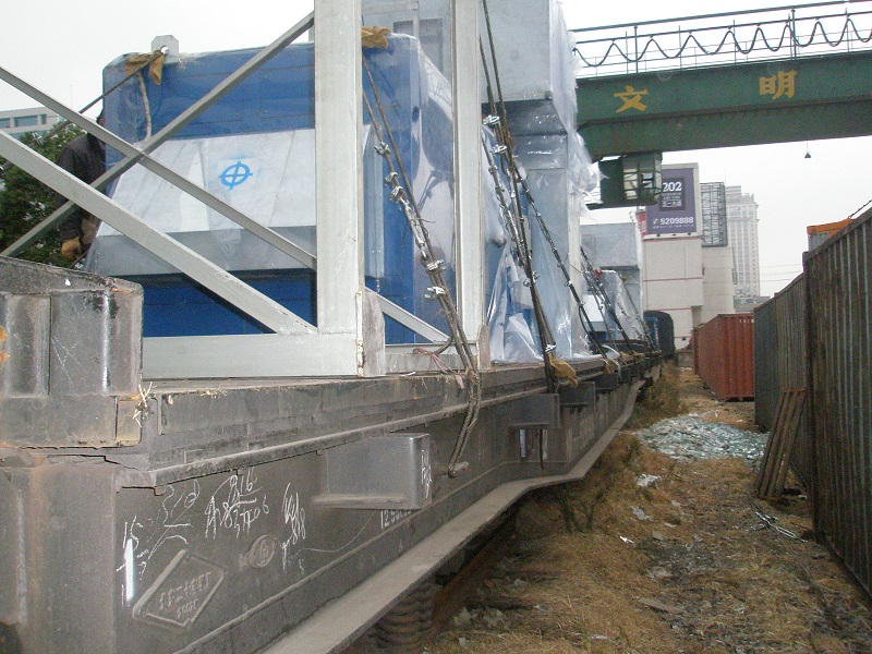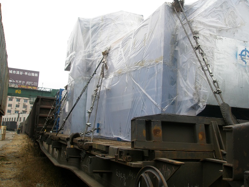 年,我司分别从长沙和大连运输“发泡橡胶生产线”设备到阿拉木图。其中从长沙运输的设备属于铁路运输限定的“二级超限”设备。我司联系了铁道部指定的“超限设备运输安全设计”专家,多次对货物进行实地测量,设计装载和加固方案。从设计方案到获得运输计划的批复,我司只用了二十多天时间,最终安全的将该批货物运抵阿拉木图.